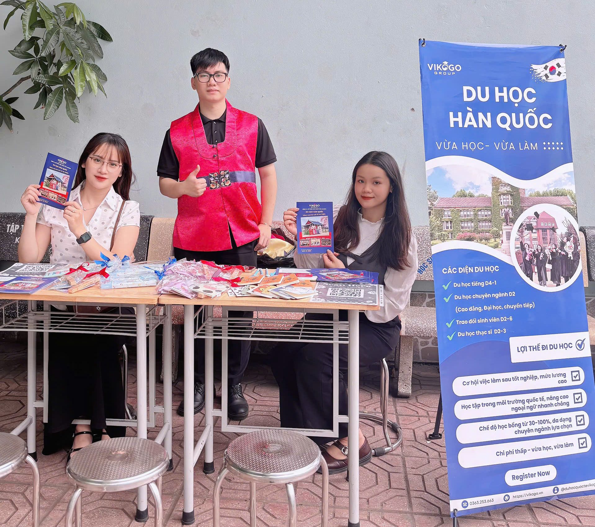 Không khí tại gian hàng VIKOGO diễn ra vô cùng sôi nổi với sự tham gia nhiệt tình của các bạn học sinh. Không chỉ dừng lại ở việc lắng nghe, nhiều bạn đã chủ động đặt câu hỏi, trao đổi trực tiếp với đội ngũ tư vấn để hiểu rõ hơn về ngành học, chi phí, điều kiện du học và cuộc sống tại Hàn Quốc.