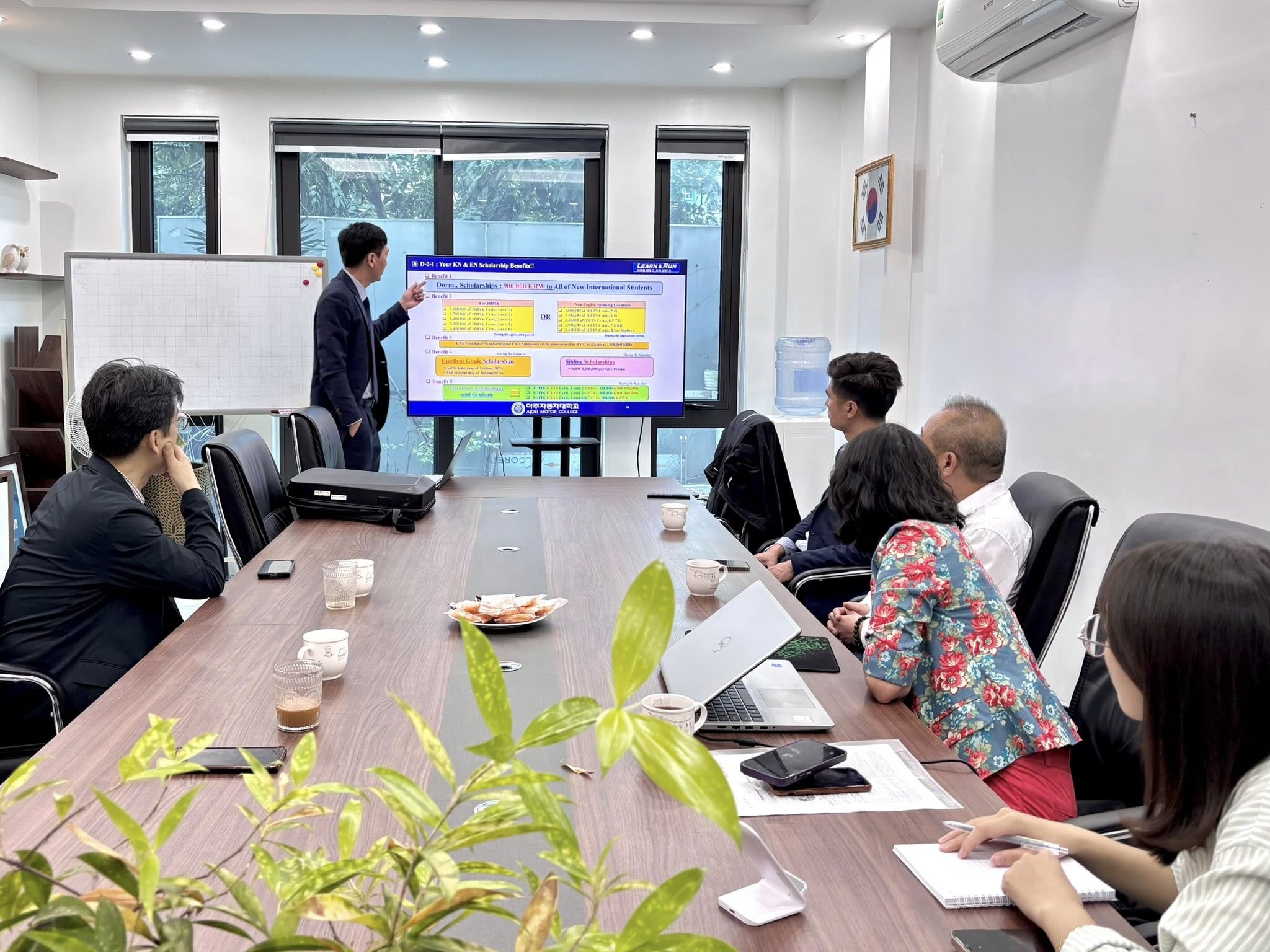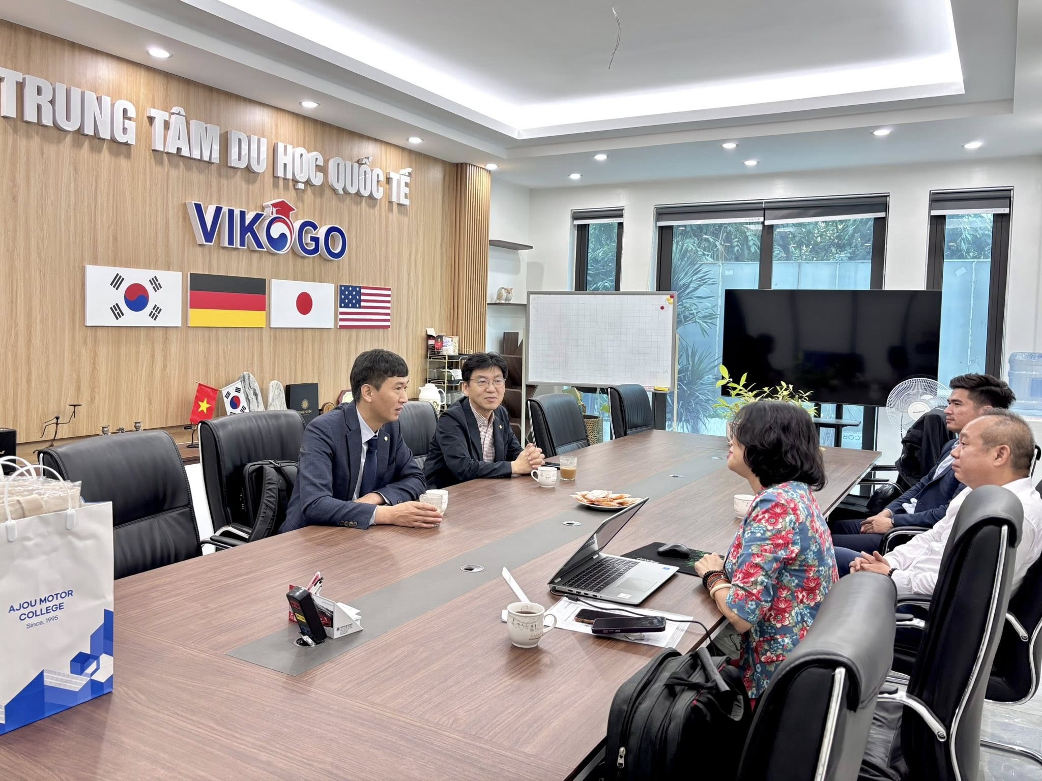 Trung tâm Du học Quốc tế VIKOGO vinh dự đón tiếp Ajou Motor College (아주자동차대학교) đến thăm và làm việc trực tiếp tại trung tâm,  đánh dấu bước tiến quan trọng trong mối quan hệ hợp tác giáo dục song phương giữa hai bên. Buổi gặp gỡ không chỉ thể hiện sự gắn kết lâu dài mà còn mở ra chương trình học bổng du học Hàn Quốc năm 2026 dành riêng cho học viên của VIKOGO.